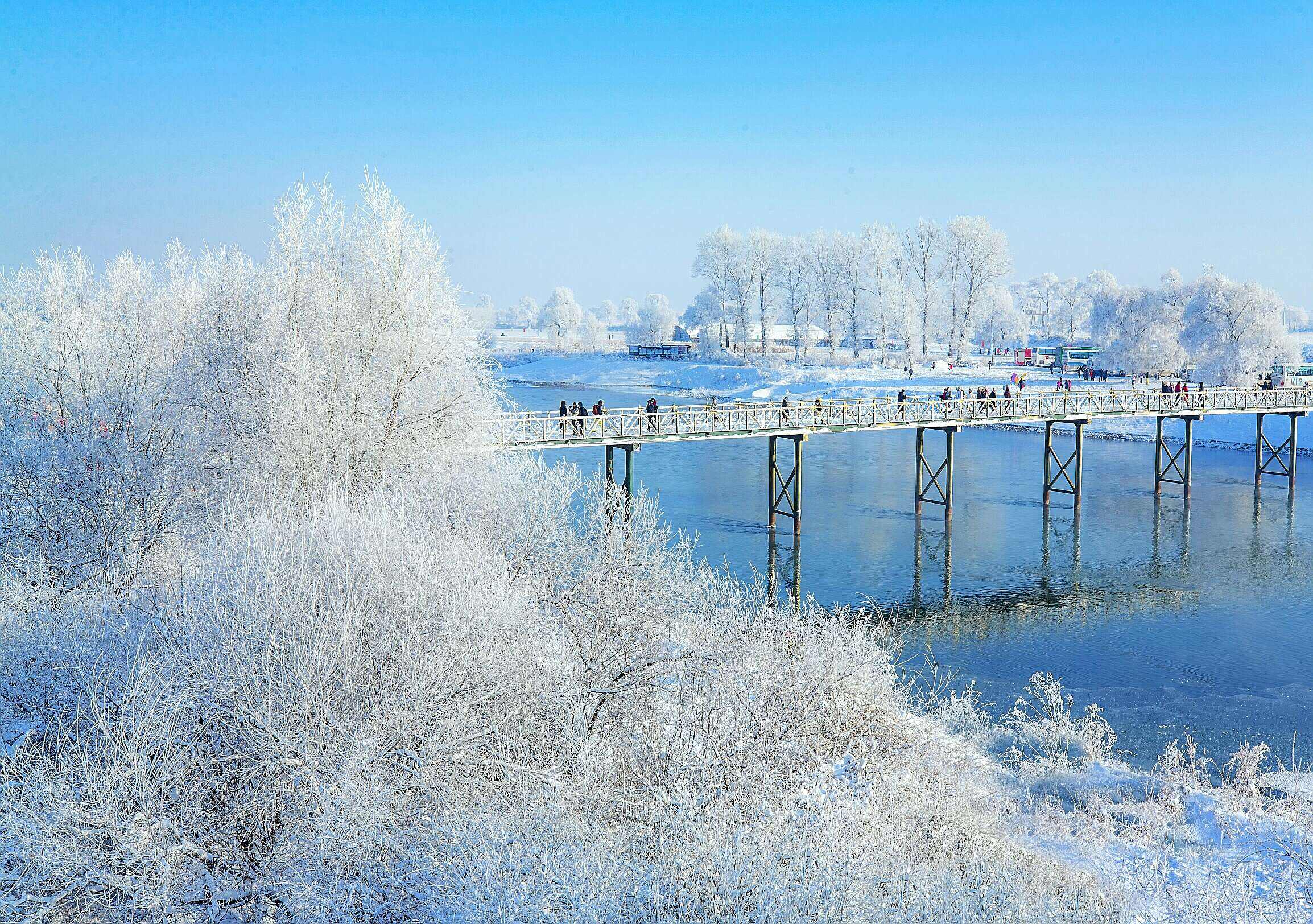 2、雾凇岛:雾凇岛位于吉林省辉南县,被誉为“中国四大雪乡”之一,这里冬季雾凇景象壮丽,银装素裹,仿佛置身于童话世界。